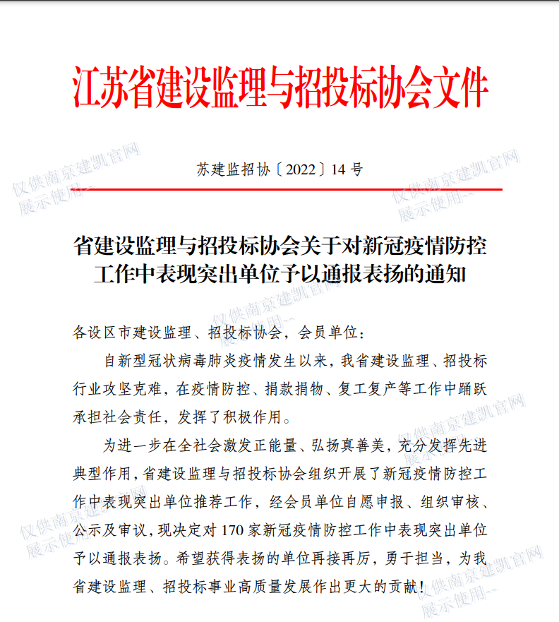恭喜我司荣获省建设监理与招投标协会授予《新冠疫情防控工作中表现突出单位的通报表扬》