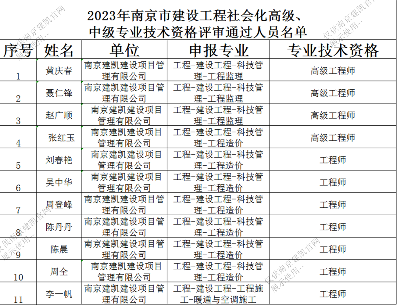 恭喜我司以下人员通过2023年南京市建设工程社会化高级、 中级专业技术资格评审