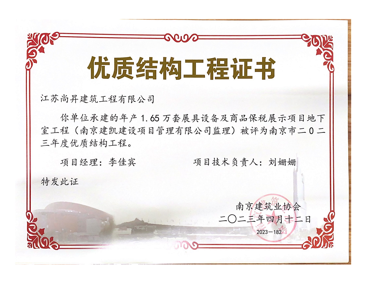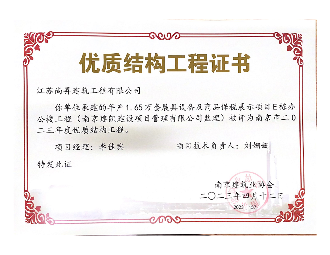 年产1.65万套展具设备及商品保税展示项荣获“2023年度优质结构工程”