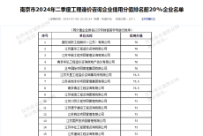 恭喜我司入选“南京市2024年二季度工程造价咨询企业信用分值排名前20%企业名单”