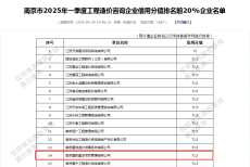 恭喜我司入选“南京市2025年一季度工程造价咨询企业信用分值排名前20%企业名单”